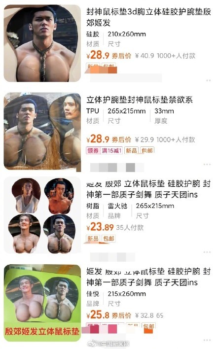 电影《封神第一部》正在热映,片中质子团角色因为健壮身材引发关注,有商家制作并在网上兜售未经授权的鼠标垫,博人眼球。
