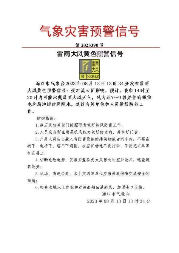 海口市气象台发布