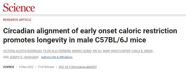 ①Successful aging of musicians: Preservation of sensorimotorregions aids audiovisual speech-in-noise perception | ScienceAdvances https://www.science.org/doi/10.1126/sciadv.adg7056 ②Acosta-Rodríguez,V., Rijo-Ferreira, F., Izumo, M., Xu, P., Wight-Carter, M., Green,C. B., & Takahashi, J. S. (2022). Circadian alignment of earlyonset caloric restriction promotes longevity in male C57BL/6J mice.Science (New York, N.Y.), . Advance online publication.https://doi.org/10.1126/science.abk0297