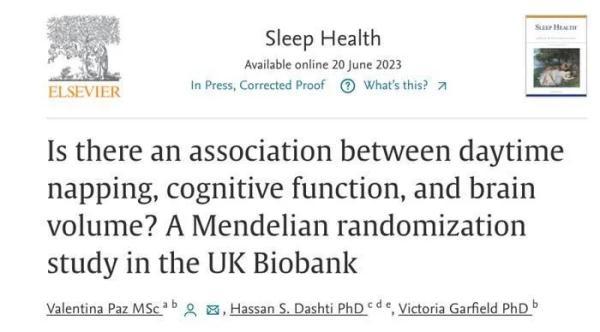 ③Valentina Paz, Hassan S. Dashti, Victoria Garfield. Is therean association between daytime napping, cognitive function, andbrain volume? A Mendelian randomization study in the UK Biobank.Sleep Health, 2023; DOI: 10.1016/j.sleh.2023.05.002