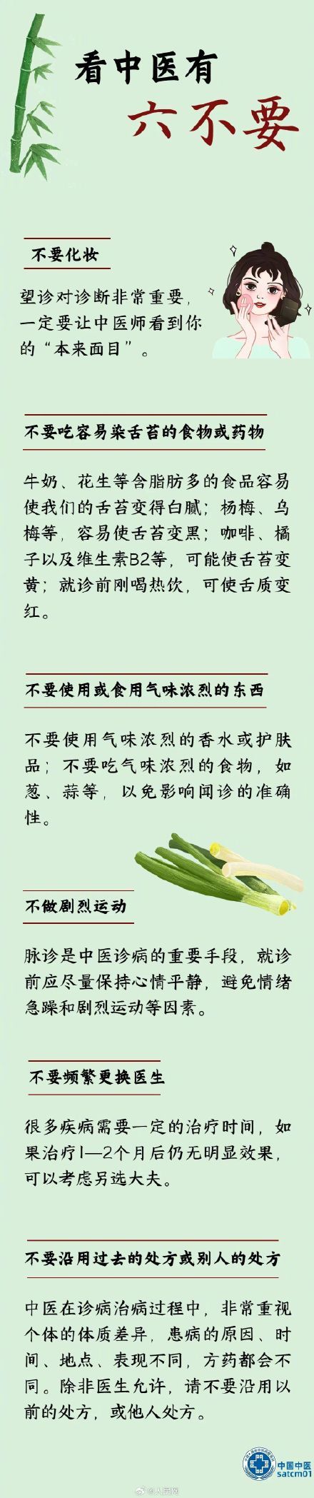 看中医时要注意什么:①不要化妆;②不要吃容易染舌苔的食物或药物;③不要使用或食用气味浓烈的东西;④不做剧烈运动;⑤不要沿用过去的处方或别人的处方...