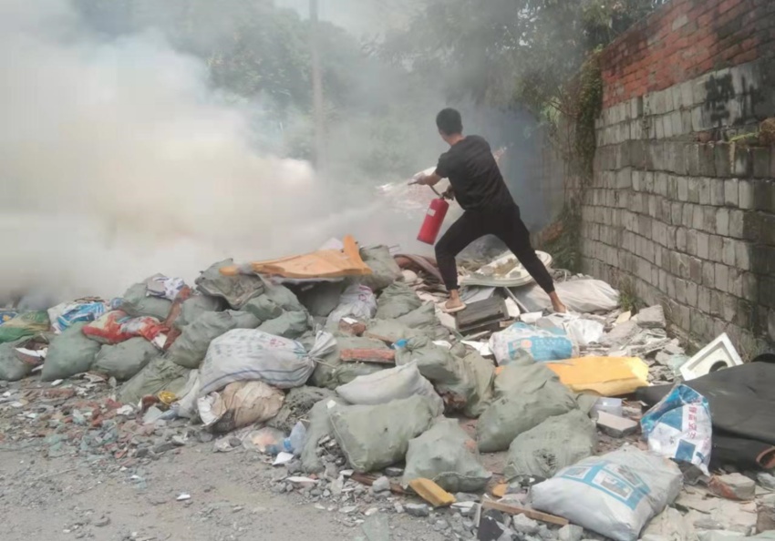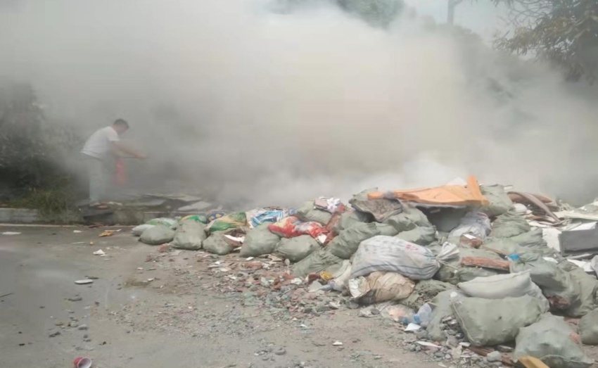 由于天气炎热,温度较高,着火处又是一拆迁垃圾堆放处,沙河社区工作人员用了8瓶灭火器还是无法将火完全熄灭。附近无居民居住,暂不需要紧急撤离。待消防员赶到现场,在大家的共同努力下,最终将火势完全扑灭,事故没有造成人员伤亡。