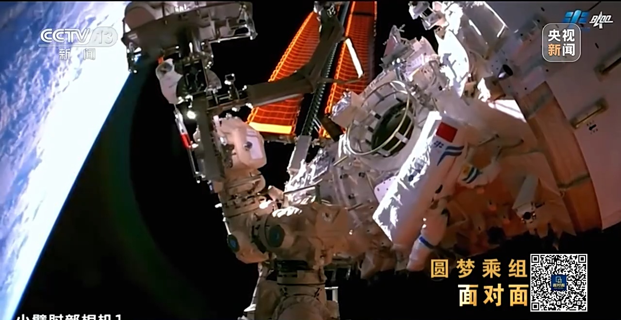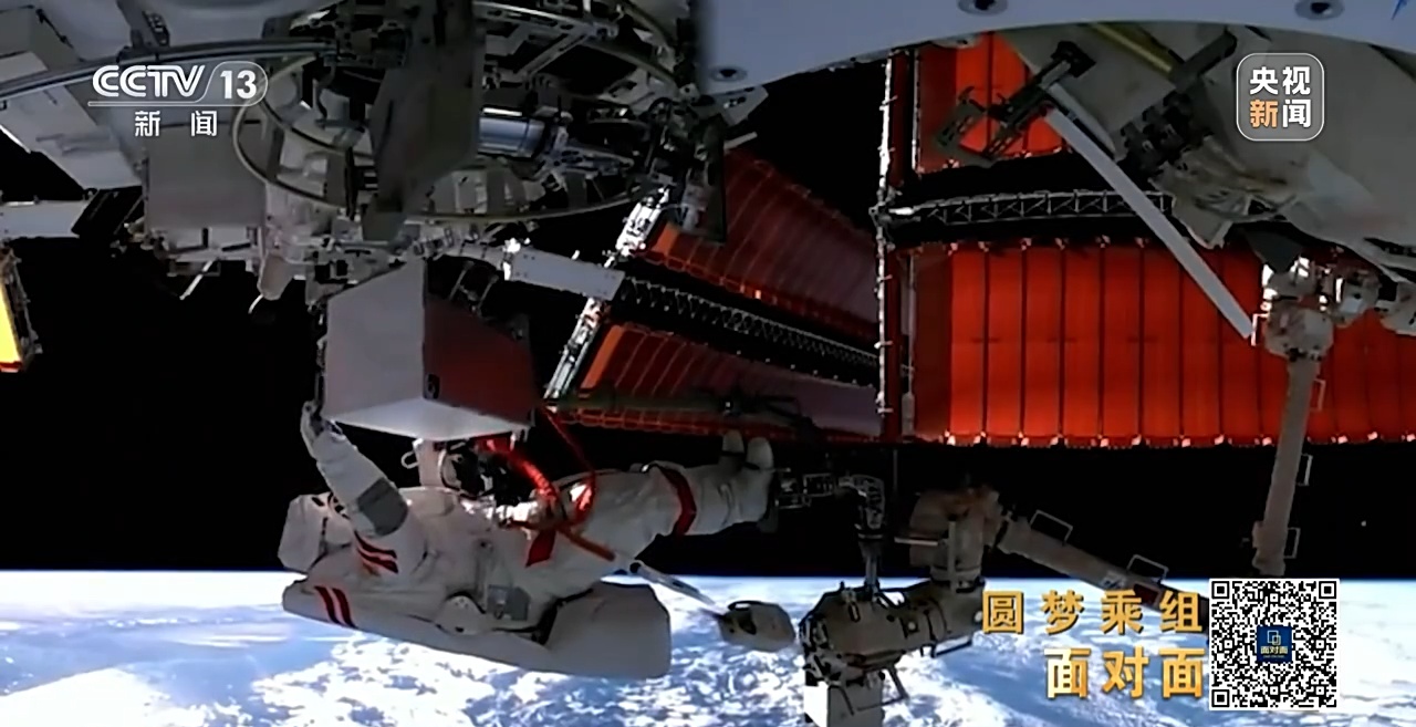 本次任务中,航天员在大小组合机械臂的支持下,由“问天”气闸舱出舱运送至“梦天”载荷舱作业点,这是迄今为止航天员乘组到达的梦天舱最远端。