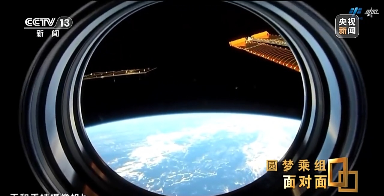 费俊龙:无论是体力还是能力,第四次装完平台以后,机械臂往回走的时候,正好大臂和小臂最高点的时候,我正好在空间站的正上方,往下看就是空间站,空间站的下方就是地球。那个景象我现在回想起来非常振奋,也很震撼,当时一看空间站在地球的映托下非常漂亮,能看到空间站后面的地球,而且很荣幸,当时我们路过了祖国上空。