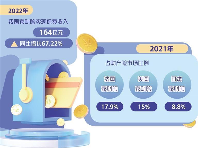 尽管家财险能够为家庭增强抵御财产损失风险的能力,但国内家财险市场却长期表现萎靡。业内人士向记者表示,在一些国家,家财险作为财产险领域常见的险种,通常是非车险领域最大的业务。2021年,法国、美国、日本的家财险占财产险市场比例分别为17.9%、15%、8.8%。而与海外市场相比,中国住房保险渗透率远远偏低。原中国银保监会披露的数据显示,去年我国家财险实现保费收入164亿元,同比增长67.22%,是财险公司同比增速最快的险种;然而从保费占比看,仅占财产及意外险市场总体保费收入的1.1%。