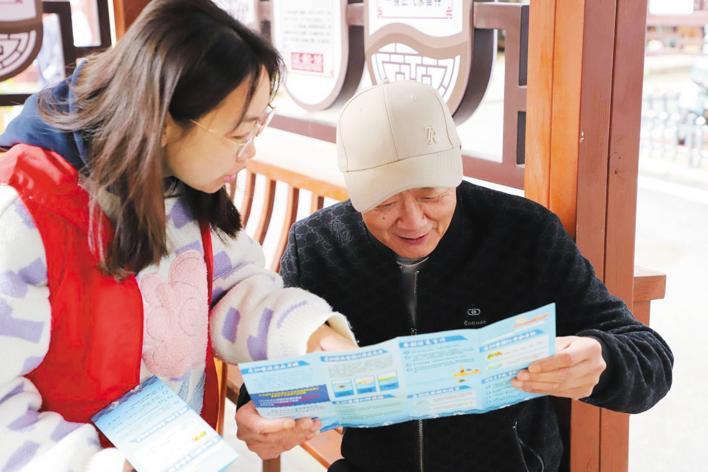 “小姨妈”在社区为老人宣传安全知识。 (通讯员 潘蓉 摄)
