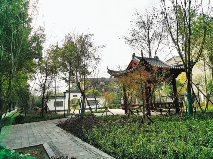 去年新建的明月公园内,凉亭、隔断墙古色古香。(湖北日报全媒记者 王丙全 摄)