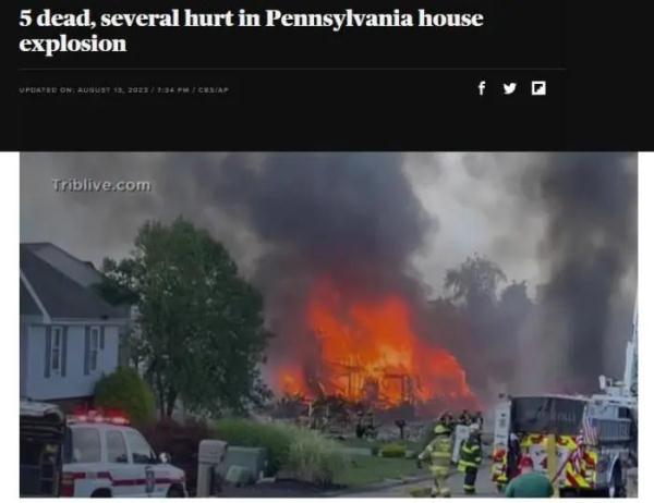 原标题:《5死3伤!美国宾州突发爆炸浓烟滚滚 多所房屋受损》