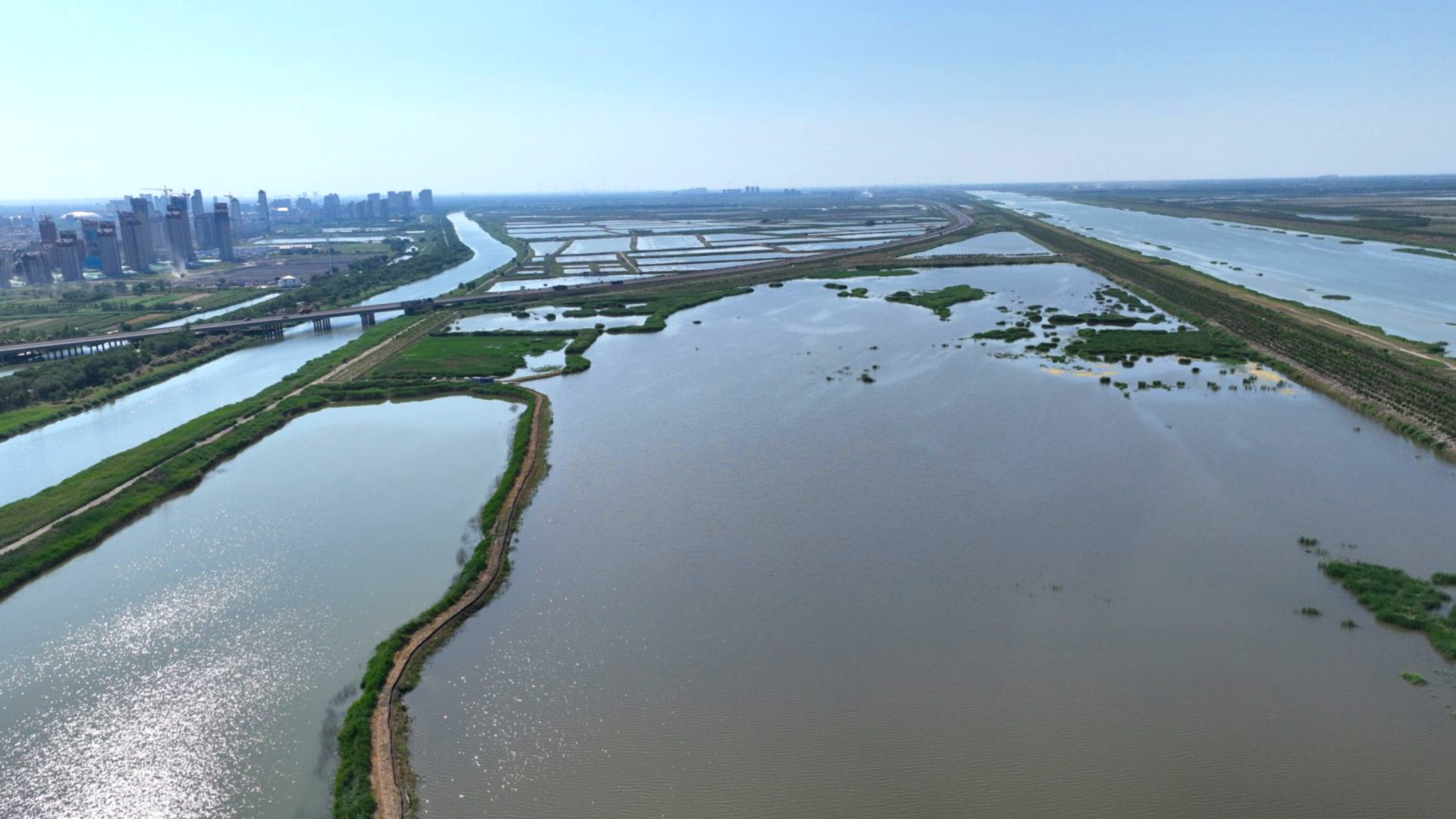 俯瞰绿色生态屏障宁河区段(央广网发 天津市规划和自然资源局供图)
