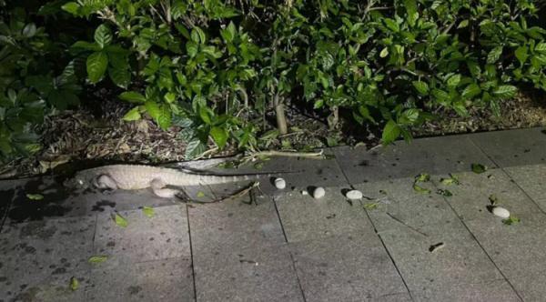 近日,佛山一小区惊现一只大蜥蜴,路边还有4颗蜥蜴蛋。经初步判定,该蜥蜴为国家一级重点保护野生动物水巨蜥。