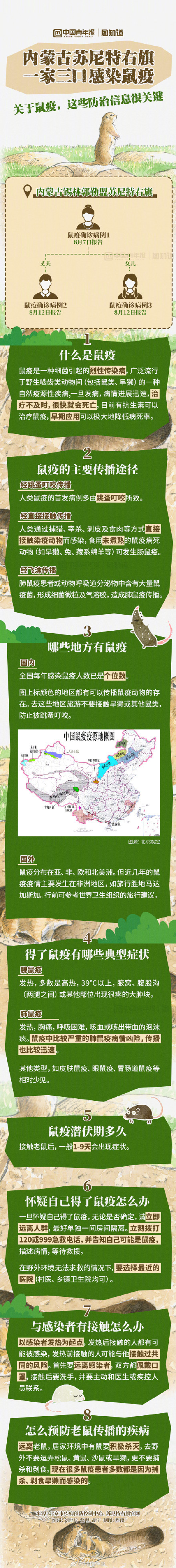 近日,内蒙古锡林郭勒盟苏尼特右旗一家三口感染了鼠疫。目前我国每年感染鼠疫人数已是个位数。但作为一种烈性传染病,感染鼠疫,一旦发病,病情进展迅速,或将危及生命。鼠疫通过何种途径传播、如何做好防护、感染鼠疫之后可能有哪些症状……了解相关知识,避开风险因素️