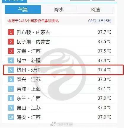 15点,杭州实时气温进入全国前10