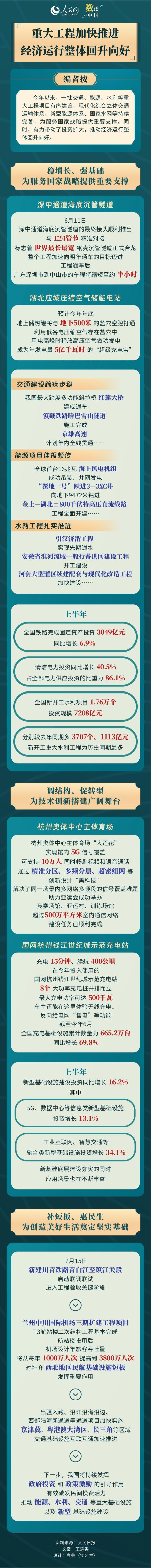 数读中国 | 重大工程加快推进 经济运行整体回升向好