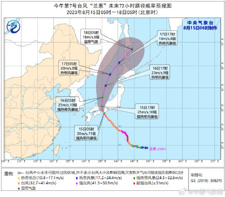 今年第7号台风“兰恩”(LAN)5点钟(北京时间)位于日本神奈川县横滨市南偏西方向约490公里的日本以南洋面上,就是北纬31.3度、东经137.9度,中心附近最大风力有13级(40米/秒),中心最低气压为960百帕,七级风圈半径300-350公里,十级风圈半径120公里,十二级风圈半径60公里。预计,“兰恩”将以每小时10-15公里的速度向西北方向移动,强度变化不大,并逐渐向日本四国岛到本州岛南部沿海靠近,并将于15日早晨到上午在上述沿海登陆。此外,一级飓风“费尔南达”14日08时(北京时)位于墨西哥下加利福尼亚州蒂华纳偏南方向约1890公里洋面,预计将以15-20公里速度向偏西方向移动,强度逐渐减弱。
