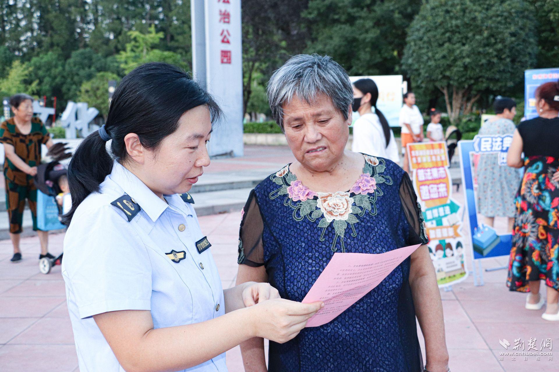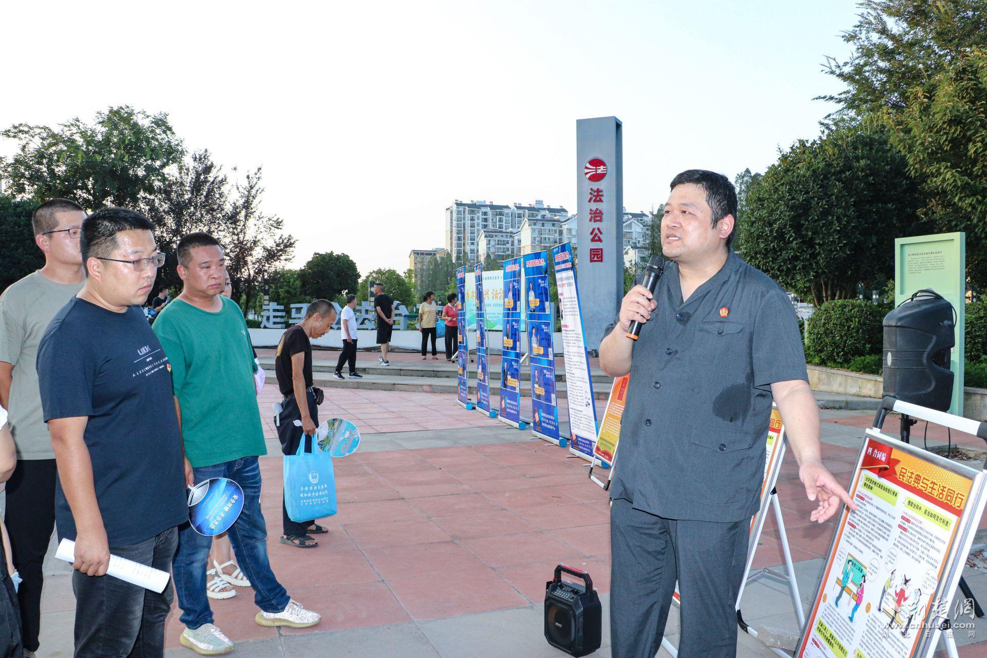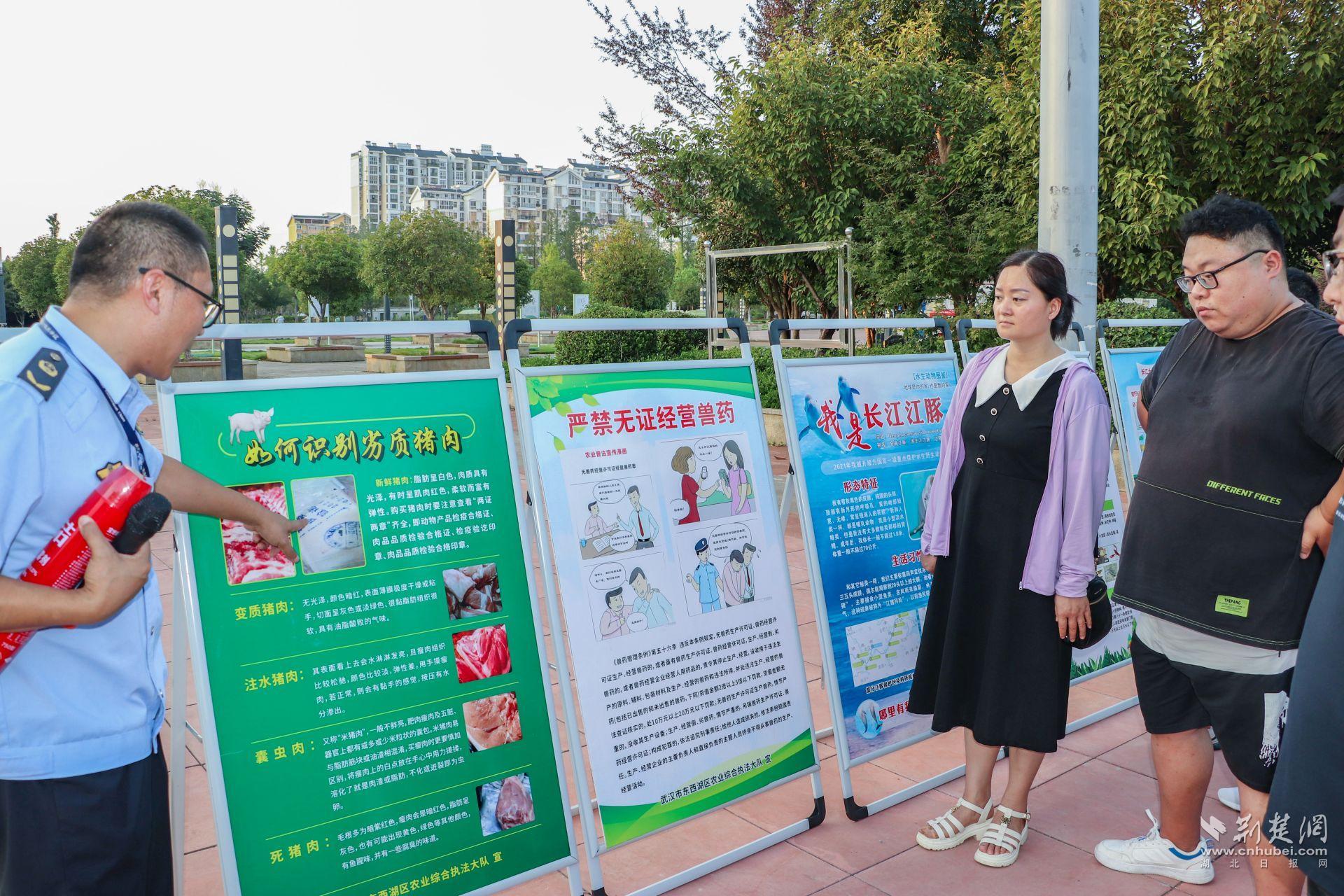 荆楚网(湖北日报网)讯 (记者文放 通讯员罗晶洁)8月10日,在首个全国生态日即将来临之际,伴着落日余晖,一场别开生面的“普法集市”在走马岭街法治广场拉开了帷幕。本次“普法集市”由东西湖区委依法治区办联合该区司法局、区农业农村局、区法院走马岭法庭、区生态环境分局、区市场监管局、走马岭街道办事处等多部门举办,主题为“开展卫生农药法治宣传,关注农业生态环境安全”。