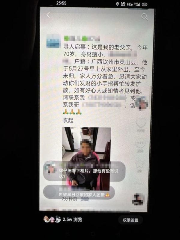 据了解,陈伯早在5月27日就离开广西的家,因其此前曾有类似“出游”经历,家人起初并未太在意,直至联系不上才意识到他可能迷路。