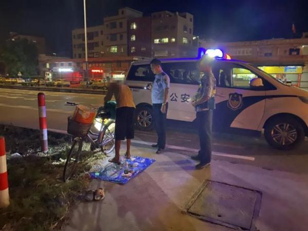 8月4日晚上21时,高明区一村委会书记冯晓路在回家途中发现一位老人躺在马路边,周围车辆呼啸而过。为了保证老人的安全,冯书记立即报警求助。