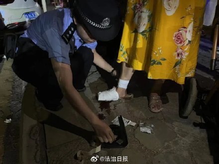 原来,8月11日晚上10时许,“乡愁贵州”灯光秀门口有一名女子,急匆匆地向滨湖派出所现场执勤警力求助,称其母亲被一铁锈桩子划伤,脚在不停流血,滨湖派出所现场执勤警力听闻后,一位女民警立即带上随身携带的急救包跑到其母亲受伤地点进行救助。