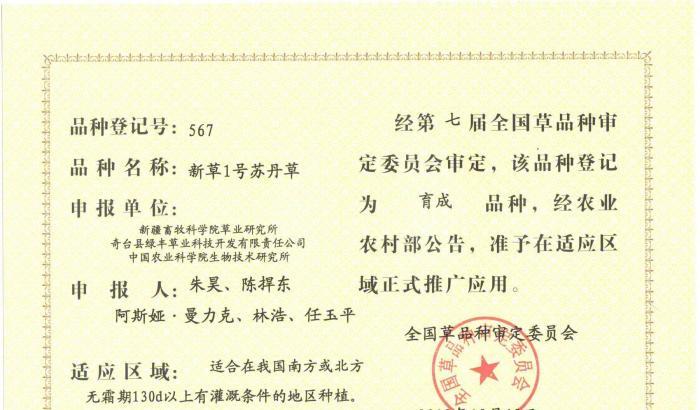 新疆畜牧科学院草业研究所朱昊副研究员和国家牧草产业技术体系昌吉综合试验站站长李学森研究员及团队成员选育的新草1号苏丹草,近日通过第七届全国草品种委员会通过审定,品种登记号:567。