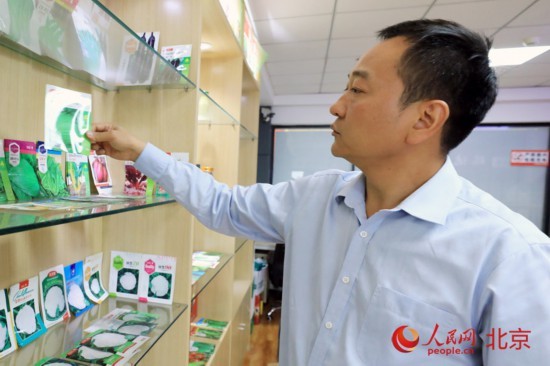 姜春青介绍他的农产品产业链产品。 人民网记者 尹星云摄