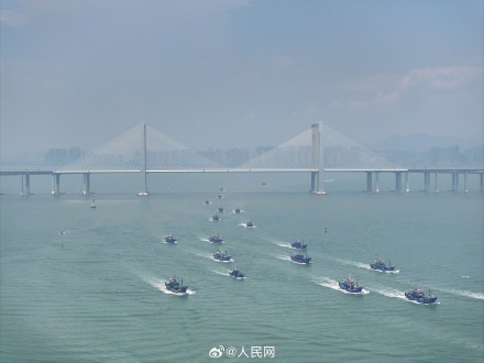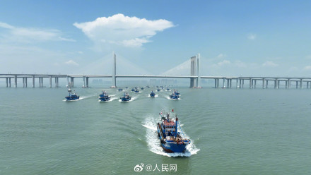 为期3个半月的伏季休渔期于8月16日12时结束,在福厦高铁泉州湾跨海大桥附近海域,渔船马达轰鸣,渔民们正在开启新一轮出海作业。出海渔船与驶来的高铁不期而遇,感受当高铁遇上开渔季有多壮观!(人民网)
