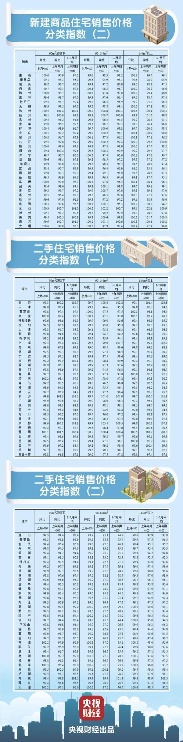 今天(16日),国家统计局发布了7月份70个大中城市商品住宅销售价格变动情况。
