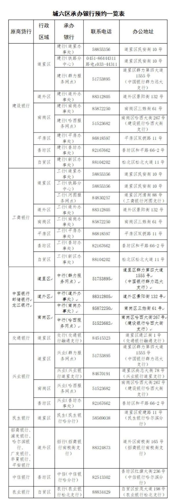 此外,借款人在非受托银行办理商贷业务的,由指定银行承办。这其中,对于借款申请人在哈尔滨银行、浦发银行、广发银行、华夏银行、平安银行等5家银行办理商业贷款的,可由招商银行承办;在邮储银行、龙江银行等2家银行办理商业贷款的,可由中国银行承办。