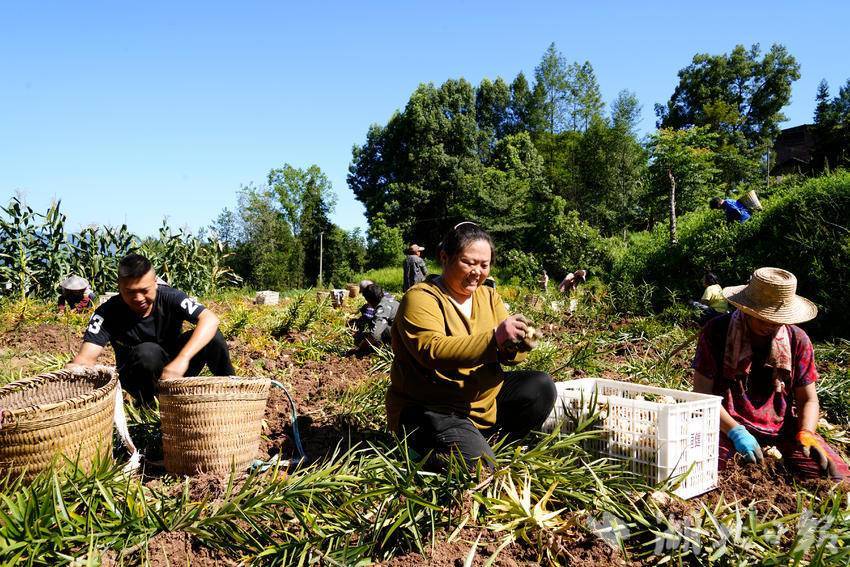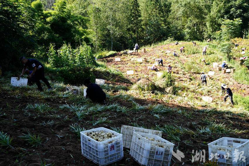 每天上午5时到10时,日头不是很火辣,是收割百合的最佳时期,村民们纷纷来到地里,抓紧采挖。“从种植、施肥、除草到采收我都在这里务工,我一天可以挖300多斤百合,可收入一百多元。”村民向辉珍已在基地打了3天零工,该基地还吸引了星红村、鹞坪村、同心村及乐福店集镇安置点的村民前来务工。