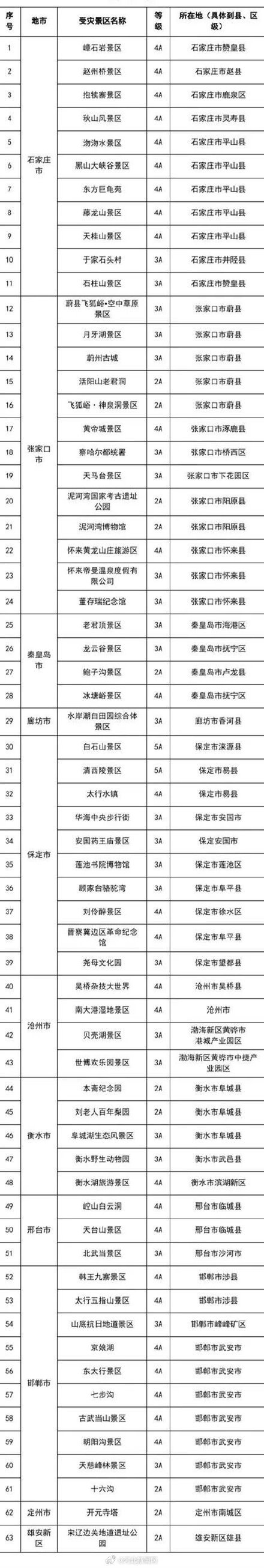 据河北旅游微信公众号消息,自河北洪涝灾害发生以来,河北省文化和旅游厅积极行动,迅速响应,主动作为,全面梳理全省文化旅游和文物领域受灾情况。经过灾后抢修和维护,河北受灾景区大部分已具备开放条件,恢复开放。截至8月15日,全省共有63家受灾A级旅游景区开放。