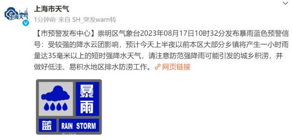 据上海天气发布,受高空槽影响,今天云量较多,不时伴有阵雨或雷雨,局部地区雨量可达大雨到暴雨。大家最好提前备好雨具,出行请多多关注临近预报和预警信息。气温的气焰在一定程度上受到打压,今天最高气温低调地退回到32℃上下,最低28℃。偏东风3~4级,相对湿度95%-60%。