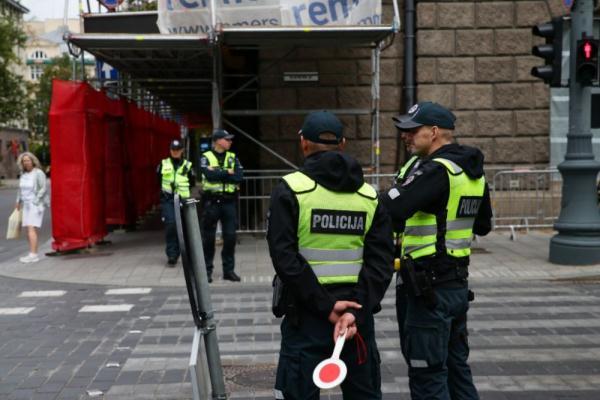 7月10日,警察在立陶宛维尔纽斯的街道上执行任务。新华社记者郑焕松摄