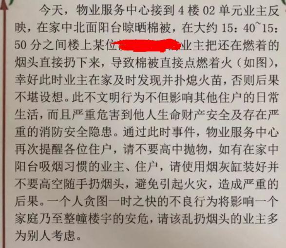 被高空烟头烧坏的棉被