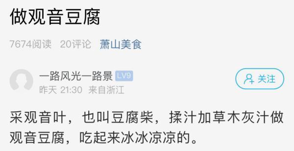 又有一位网友发帖:采观音叶,也叫豆腐柴,揉汁加草木灰汁做观音豆腐,吃起来冰冰凉凉的。