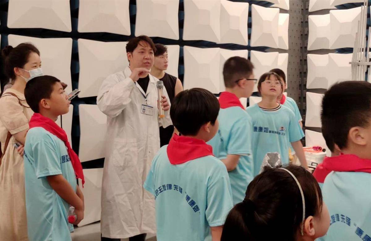 孩子们来到电磁兼容实验室,检验员李佳森向孩子们讲解了静电是如何产生的:”在秋冬时节,脱下毛衣后头发会竖起来;握手时,刚一接触到对方后会突然感到指尖针刺般刺痛。这些都是静电现象,静电顾名思义就是处于静止状态的电荷,因为正负电荷不相等,导致物体整体带电。”