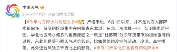 近日,华北多地遭遇暴雨侵袭,部分地区发生洪涝灾害。未来十天,华北东北还将有两轮降水,今年北方降水为何这么多[gf]feff[/gf]?