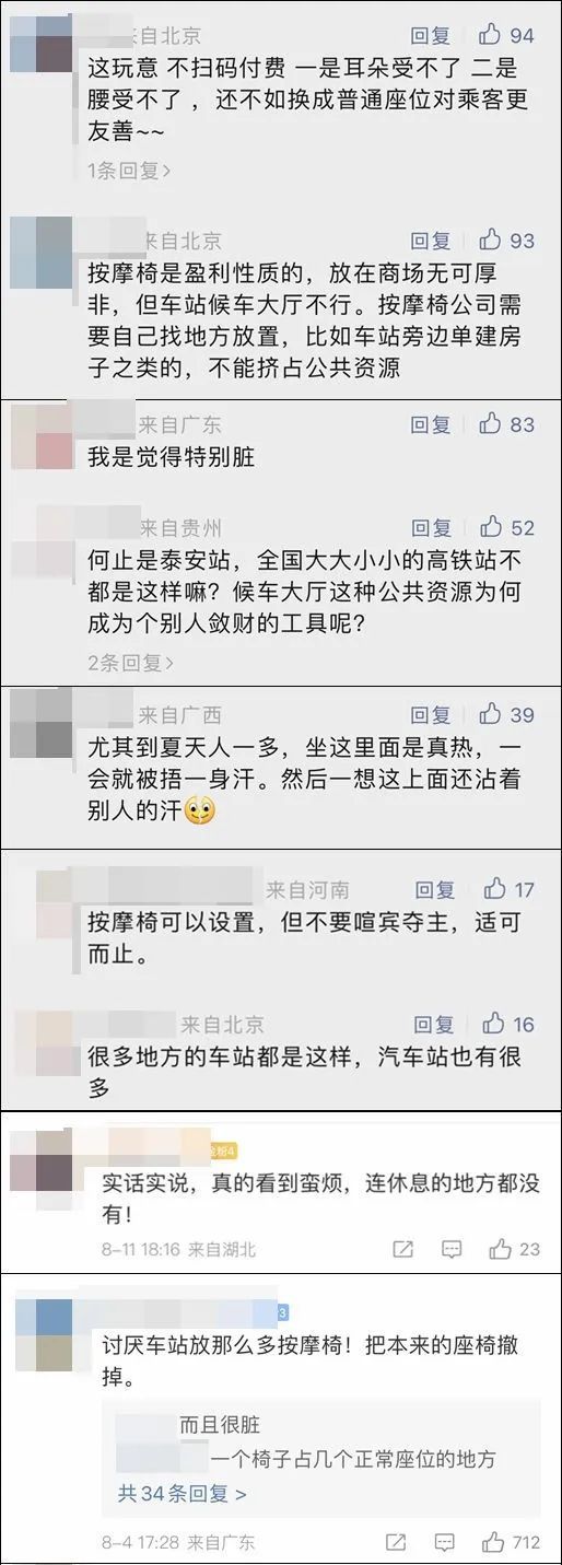 游客吐槽“泰安高铁站近9成是按摩椅”
