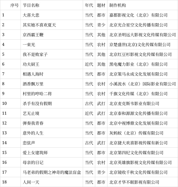 北京重点网络电影拍摄备案公示剧目信息