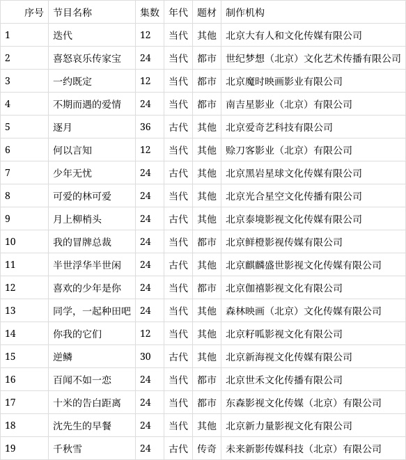 北京重点网络剧拍摄备案公示剧目信息