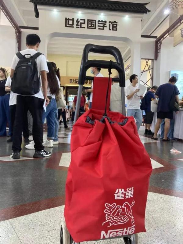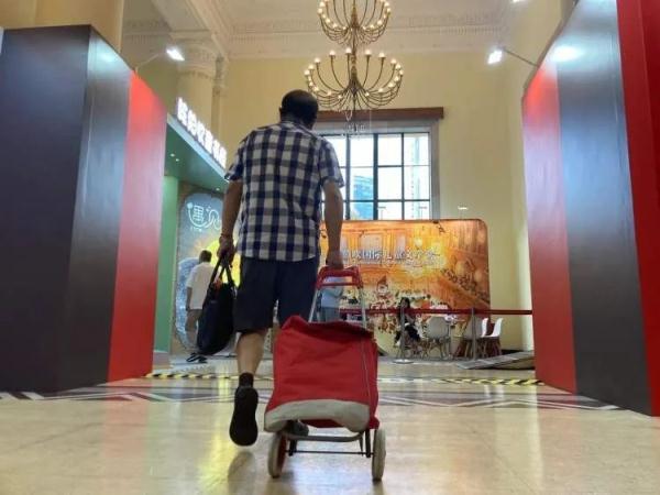 当然,在书展现场像孙老太那样背着大袋书走路的老人似乎也少见,跟孙老太相比,有几位老人的准备工作就做得比较充分——他们是拖着平时买菜和日用品的小拖车前来淘书。