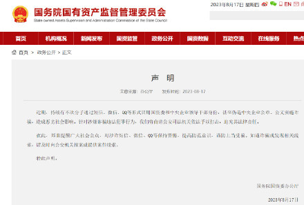 近期,持续有不法分子通过短信、微信、QQ等形式冒用国资委和中央企业领导干部身份,甚至伪造中央企业公章、公文实施诈骗,造成恶劣社会影响。针对涉嫌诈骗违法犯罪行为,我们将商请公安司法机关依法予以打击,追究其法律责任。在此,郑重提醒广大社会公众,对涉诈短信、微信、QQ等保持警惕,提高防范意识,谨防上当受骗。如遇诈骗或发现相关线索,请及时向公安机关报案或提供案件线索。