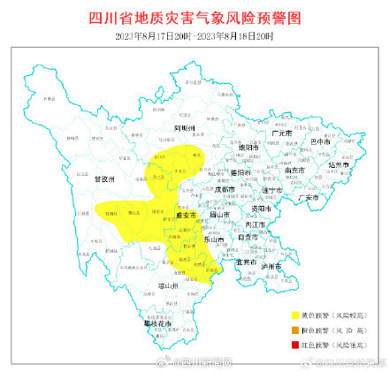 根据四川省气象台天气预报情况,结合四川省地质环境条件,8月17日20时到8月18日20时,全省地质灾害气象风险预警结果如下: