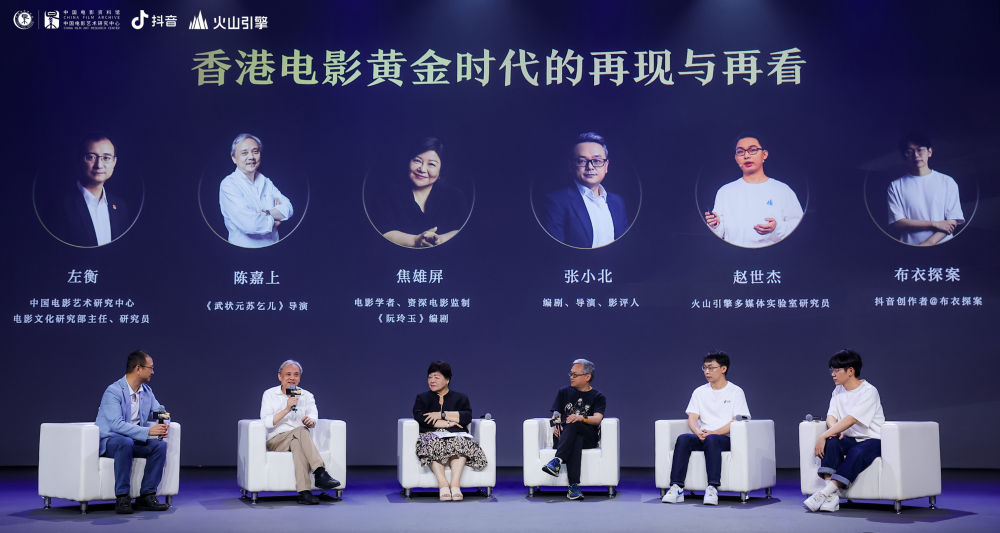 在“再续时光——经典香港电影修复发布会”上,与会嘉宾就香港电影黄金时代进行座谈(8月16日摄)。新华社发(受访者提供)