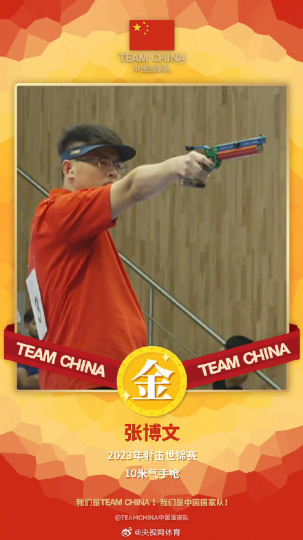 8月17日,2023年射击世锦赛男子10米气手枪决赛,张博文以领先第二名3.5环的优势夺得冠军,为中国队拿到了这个项目的第二个奥运席位!