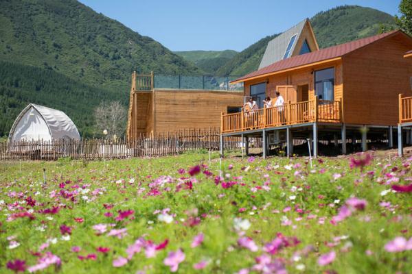 8月12日,游客在宁夏固原市泾源县大湾乡杨岭村的民宿聊天。新华社记者 李旭伦 摄