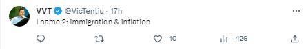 有网友列举“移民(危机)和通胀”。↓