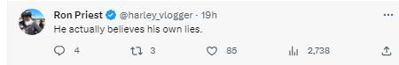 也有网友直言讽刺:“他是真的相信自己说的谎。”↓