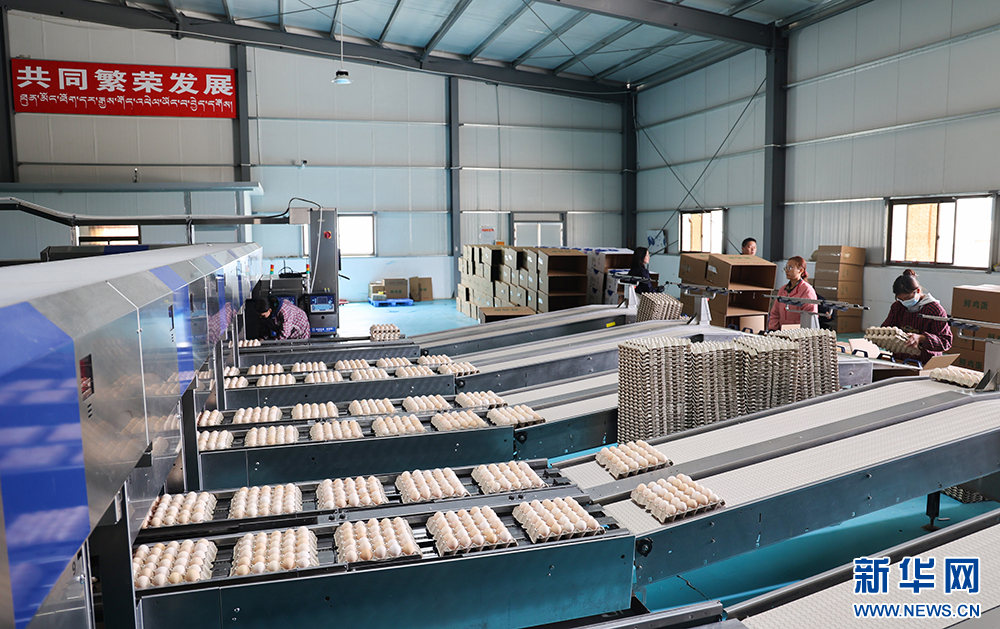 8月的山南气候宜人,蓝蓝的天空飘着朵朵白云。在山南市乃东区颇章乡格拉村,西藏宏农百万羽智能化藏鸡产业园拔地而起,雄伟壮观。走进藏鸡产业园,只见自动化传输线上,一颗颗鸡蛋滚滚而来,传输带尽头是工人们忙碌打包、封装的身影。“今年上半年存栏蛋鸡达到75万羽,日均产蛋50万枚,产蛋率峰值达到95.6%。目前,我们已经是西藏最大的蛋鸡养殖企业。”西藏宏农农业发展有限公司董事长张宏林说。