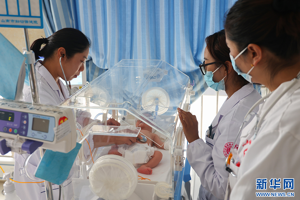 图为湖北省援藏医护人员在山南市妇幼保健院为新生儿做护理。新华网 连迅 摄