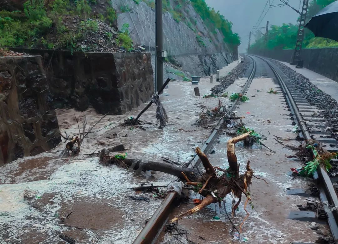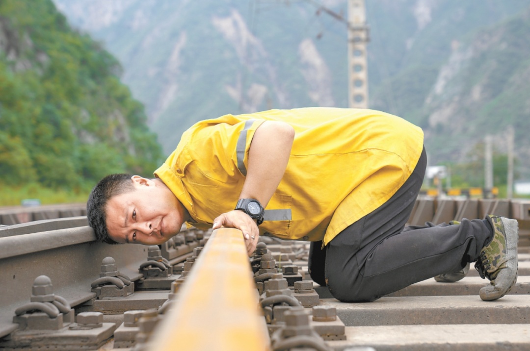 贠鹏认真检查丰沙线线路、隧道等设备状态,确保汛期行车安全。(李响 摄)