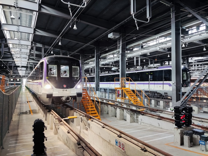 图为停靠在中铁建交通运营集团海教园车辆段的天津地铁6号线二期全自动无人驾驶电客车。光明网记者 孔繁鑫/摄